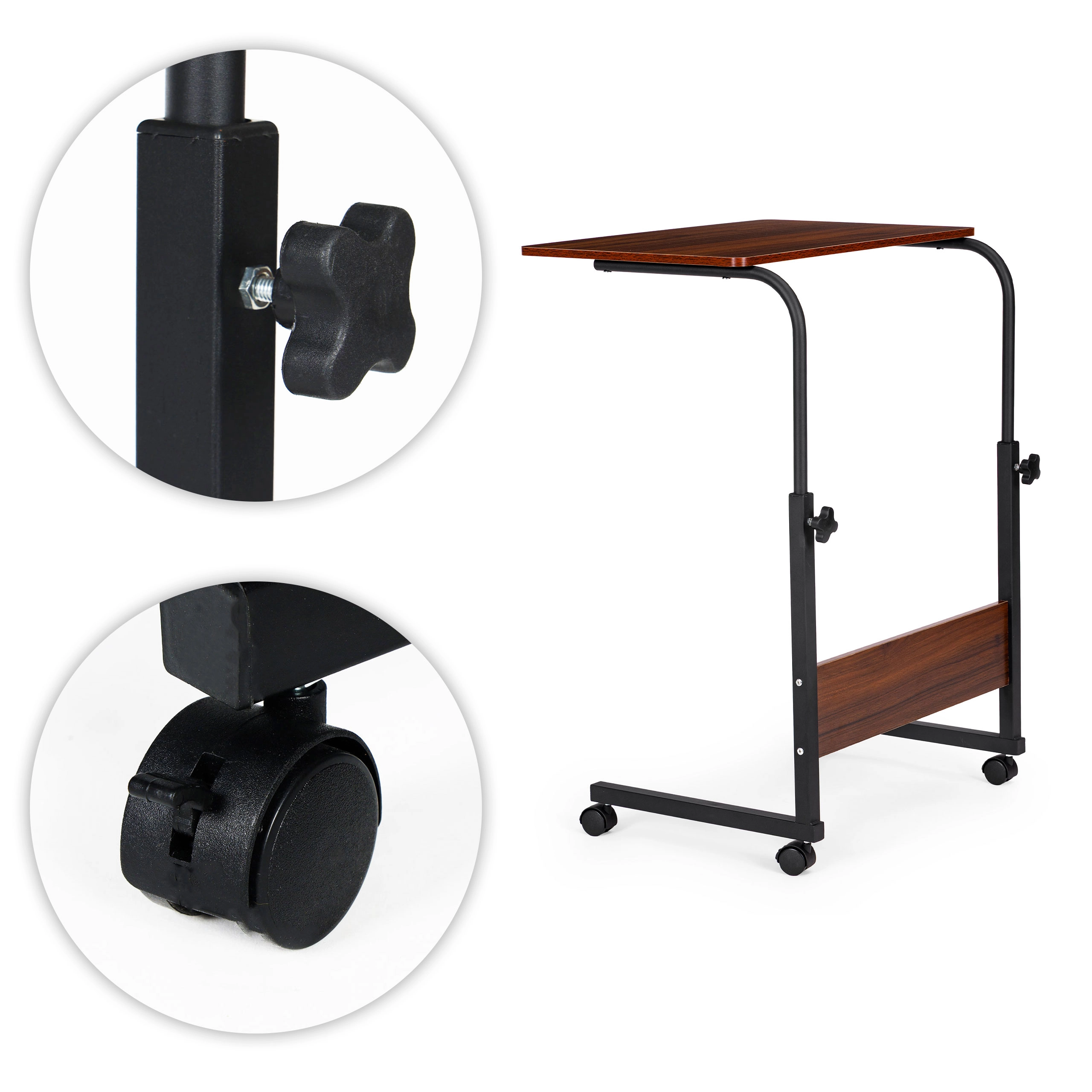 Table pour ordinateur portable avec roulettes - table d'appoint pour canapé ou fauteuil brun foncé ModernHome