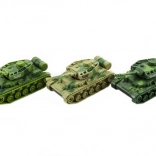 L'emballage en boîte contient 10 pièces et les chars sont disponibles en 3 couleurs attrayantes, permettant aux enfants de créer leur propre unité et d'imaginer de multiples scénarios de jeu. Les dimensions compactes 11 × 5 × 4 cm tiennent parfaitement dans les petites mains.