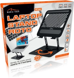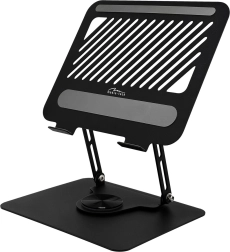 Rotation à 360°, réglage, présentation ! Le support offre non seulement une excellente stabilité, mais aussi une mobilité totale grâce à une plateforme rotative à 360°, permettant de changer rapidement l’angle de vision, de partager l’écran avec des collègues ou de regarder des films confortablement.