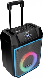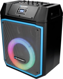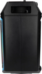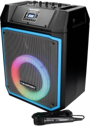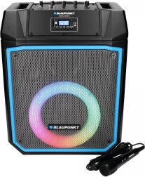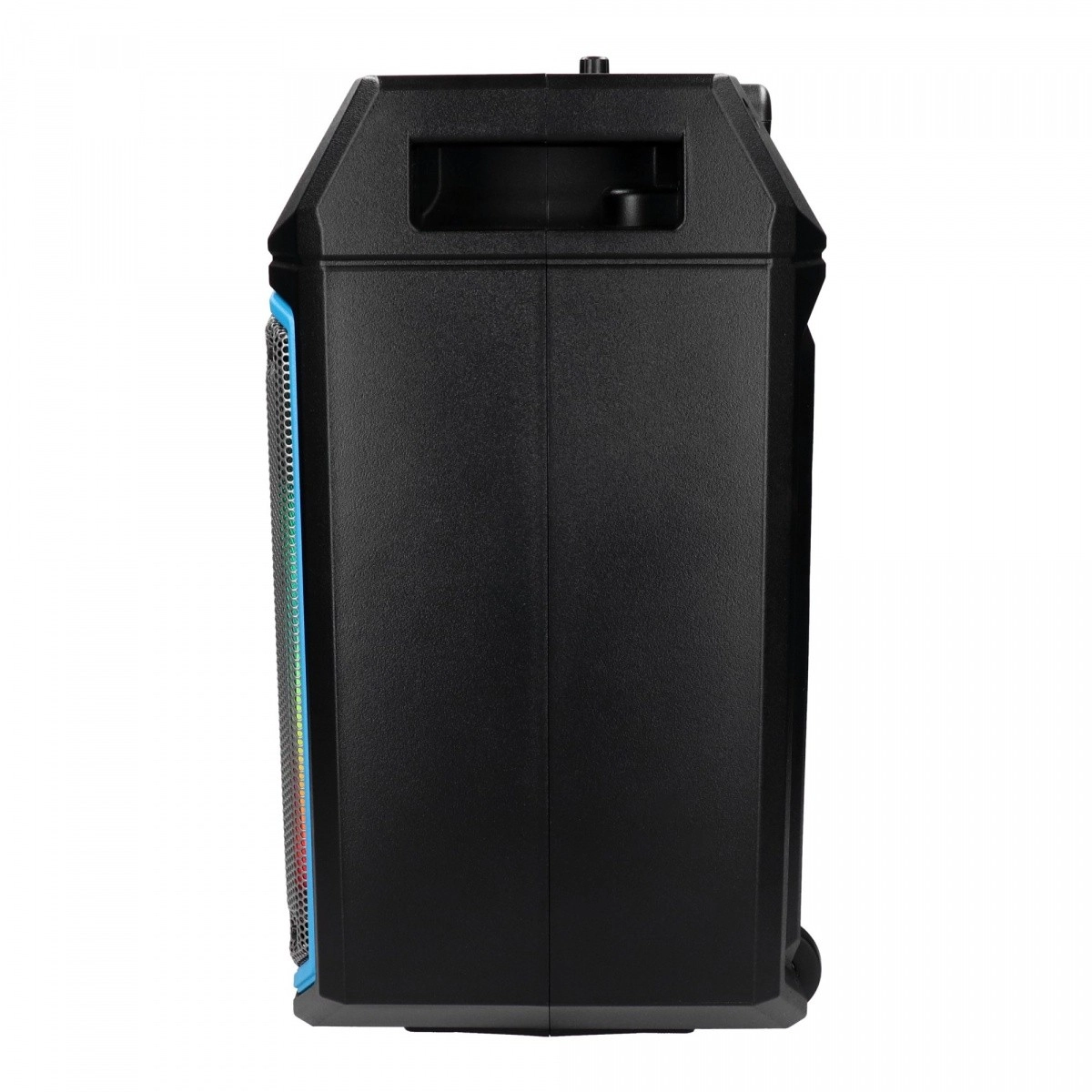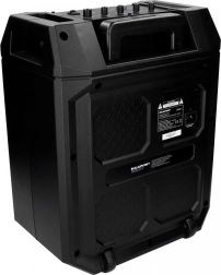 Le confort est assuré par une télécommande et une poignée télescopique avec roulettes pour un déplacement facile. Le microphone intégré pour le karaoké et le panneau LED multicolore apportent l’ambiance idéale à votre fête.