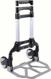 Ce chariot est équipé d’une plate-forme pliante de 39 × 21 cm, qui accueille facilement des cartons, caisses et autres objets jusqu’à 70 kg. La poignée télescopique avec réglage de hauteur en trois niveaux offre un guidage confortable pour des personnes de différentes tailles. La roue robuste de 120 mm de diamètre assure une stabilité et une adhérence optimales même sur des surfaces irrégulières.