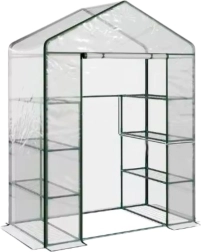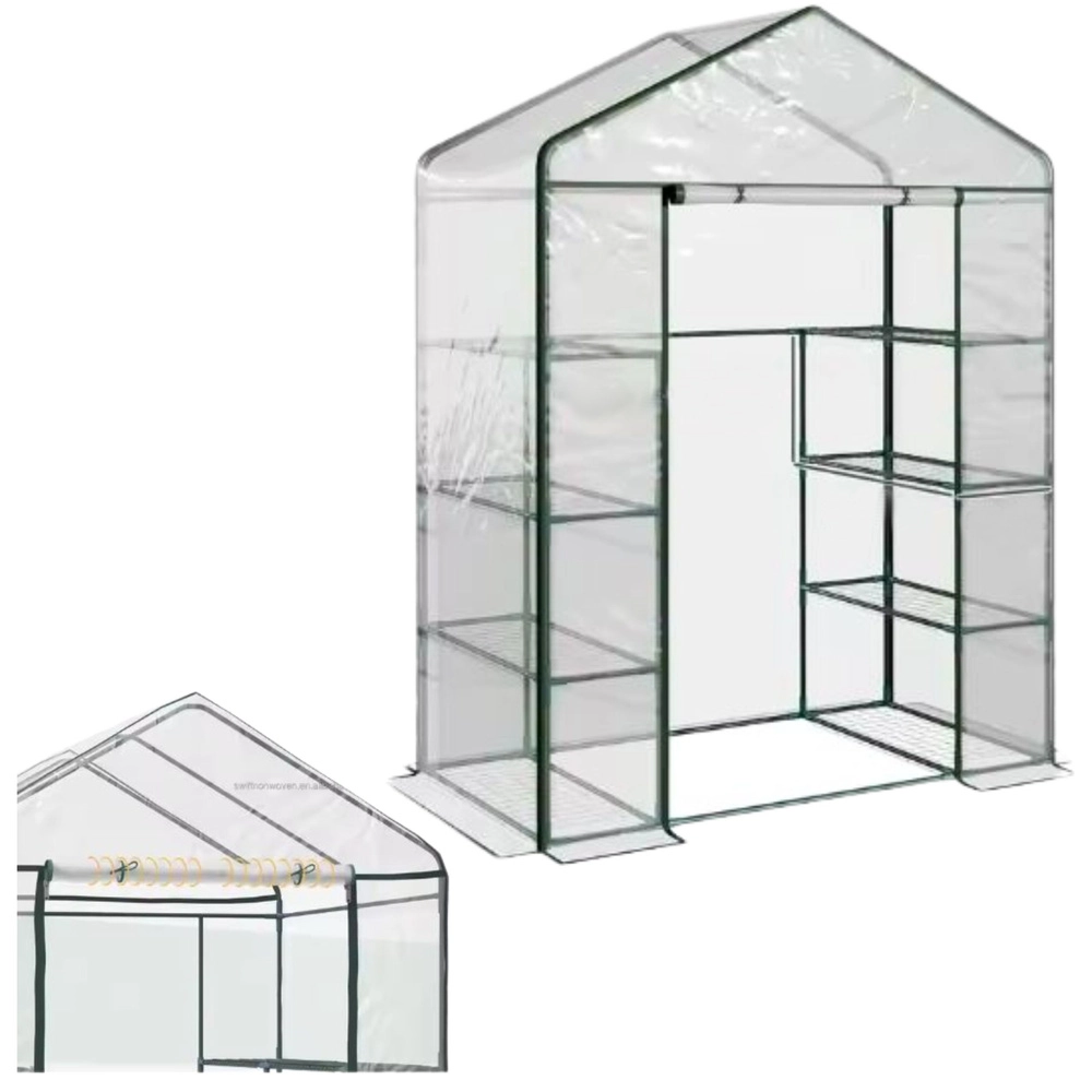 La structure est réalisée en tubes d’acier revêtus par poudre, ce qui garantit une résistance à la corrosion et une longue durée de vie pendant de nombreuses saisons. Le revêtement en PVC transparent permet un accès optimal à la lumière tout en protégeant les plantes du vent, de la pluie et des basses températures.