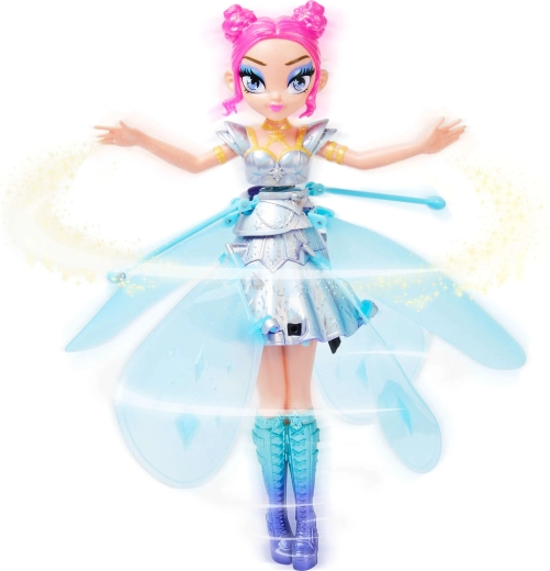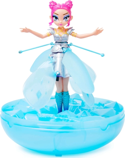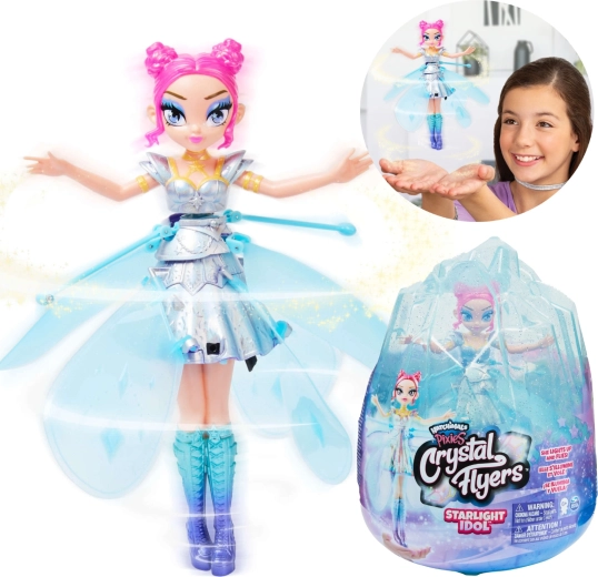 Découvrez la fée volante magique Hatchimals Pixies Crystal Flyers en version bleue Starlight Idol. Une fée élégante aux ailes scintillantes qui lévite au-dessus de vos mains, réagit à leurs mouvements et, grâce au rechargement USB, offre des heures de jeu interactif. Idée cadeau idéale pour les enfants à partir de 6 ans, avec une figurine d’environ 17 cm de haut.