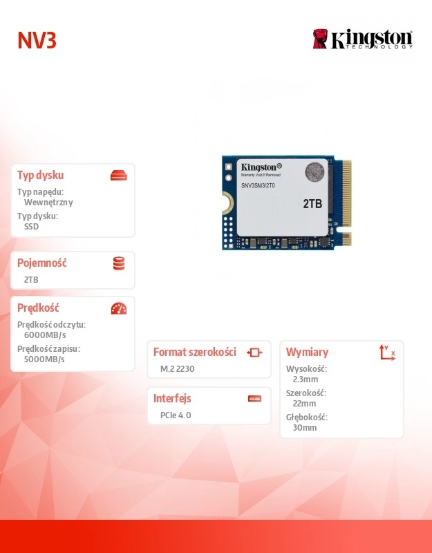 disque ssd kingston nv3 2 to m.2 2230 pcie 4.0 nvme