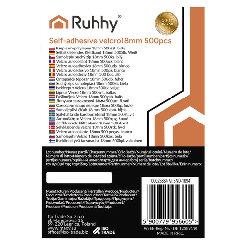 Le velcro Ruhhy comprend deux parties : le crochet et la boucle, permettant une liaison solide et répétée. Grâce à la couche autocollante, le montage est rapide et convient à diverses surfaces, du plastique au verre.