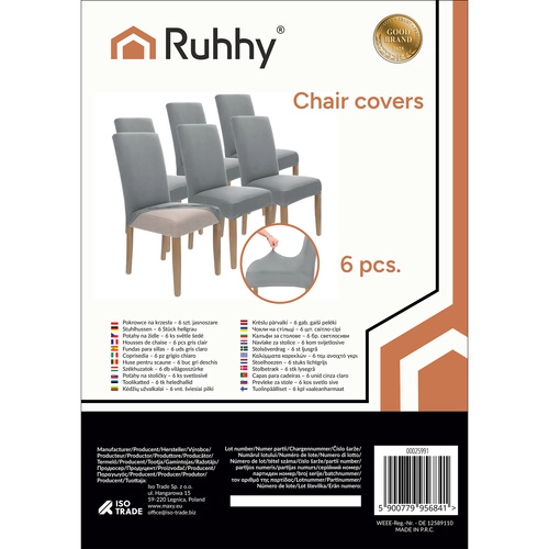 Les housses de chaise RUHHY en élégant gris clair offrent non seulement une protection, mais aussi un look moderne à vos chaises. Fabriquées en velours doux et élastique, elles s’adaptent parfaitement à la forme de la chaise.