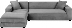 Housse pour canapé d’angle RUHHY - velours extensible gris foncé 145 - 185 cm