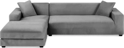 Housse de canapé RUHHY en velours doux et extensible, un choix idéal pour protéger et rafraîchir votre canapé avec méridienne. Elle s’adapte parfaitement à la forme du meuble, ne glisse pas et apporte à votre intérieur une allure chaleureuse et élégante.