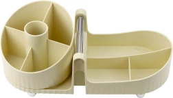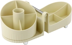 L’organiseur est fabriqué en plastique durable, sécurisé, non toxique et respectueux de l’environnement. Il dispose d’une partie rotative pouvant tourner à 360°, assurant un accès facile au contenu sans devoir déplacer tout le contenant. Les compartiments de hauteurs variées permettent de ranger aussi bien des flacons hauts que de petits objets.