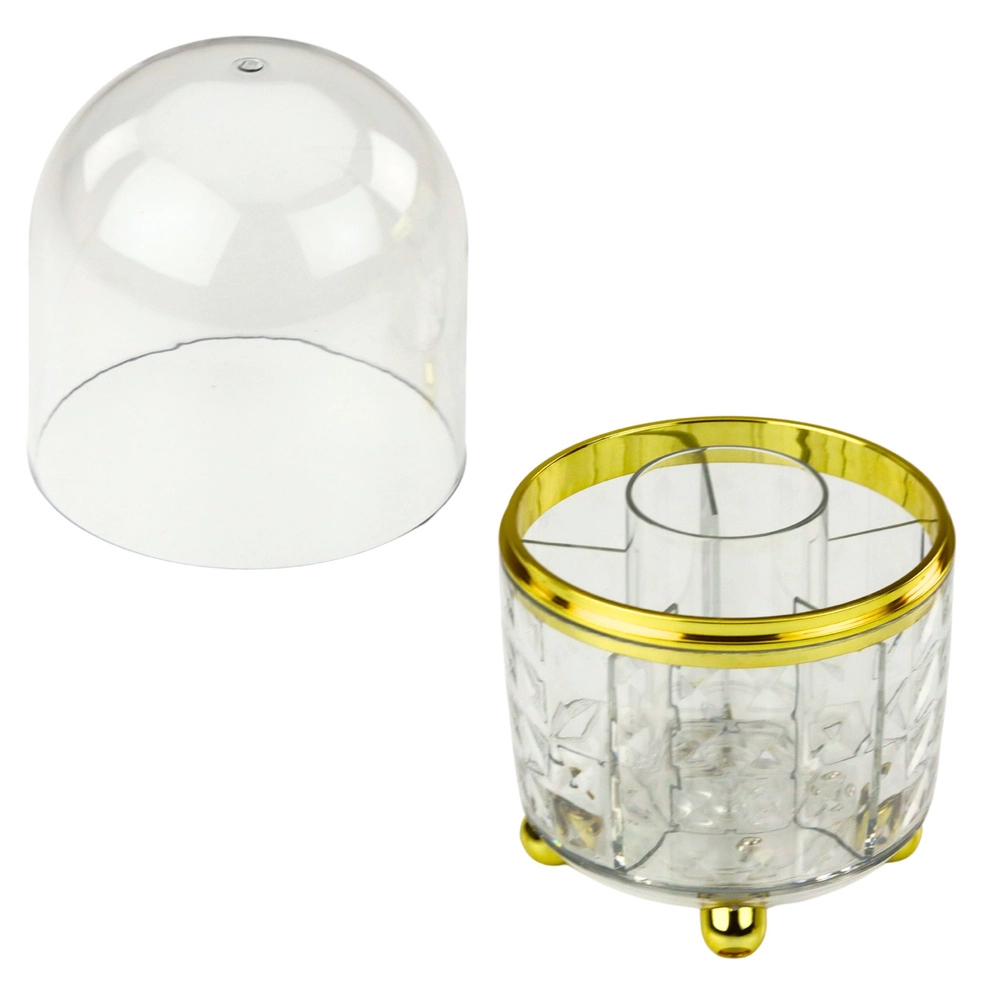 L’organiseur élégant avec couvercle transparent est une solution stylée pour toute coiffeuse, bureau ou étagère de salle de bain. Il se distingue par une rotation à 360°, permettant de faire pivoter rapidement le récipient pour trouver le bon compartiment. Le couvercle transparent protège les cosmétiques et les pinceaux de la poussière et des saletés.
