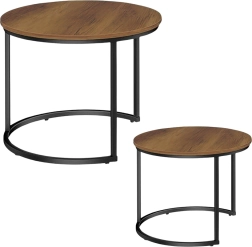 La grande table de 60 x 45 cm offre une surface spacieuse, idéale pour le café, les livres ou les décorations. La petite table de 40 x 40 cm est parfaite comme table d’appoint près du canapé ou du fauteuil. Les deux tables sont fabriquées à partir de matériaux robustes : plateau en MDF résistant aspect bois naturel et structure en métal noir avec finition peinture époxy, pour une touche élégante au style industriel.