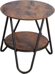 Les plateaux sont en MDF laminé finition bois rustique, apportant une atmosphère chaleureuse à la pièce, tandis que les pieds métalliques courbés confèrent légèreté et modernité. Grâce à l’étagère supplémentaire, vous pouvez ranger de petits objets, tels que télécommandes, livres ou décorations, sans encombrer le plateau principal. La table se déplace facilement grâce à son poids léger.