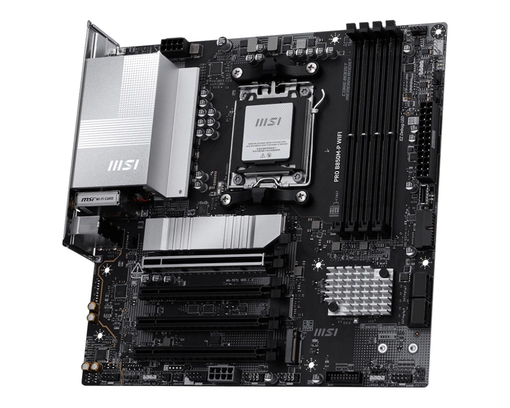 PRO B850M-P WIFI est conçue pour les utilisateurs exigeants recherchant haute performance et fiabilité. Elle prend en charge les processeurs les plus récents des séries AMD Ryzen 9000, 8000 et 7000, ainsi que la mémoire DDR5 en double canal jusqu’à 8200+ MT/s (OC).
