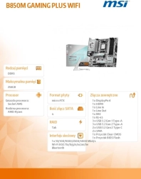 La carte mère B850M Gaming Plus Wifi AM5 est conçue pour les joueurs à la recherche d’une expérience complète avec une connectivité étendue et des solutions Wi‑Fi de pointe, incluant la toute dernière technologie Wi‑Fi 7, un réseau LAN 5G et le PCIe 5.0.