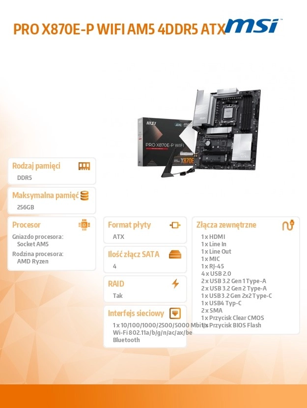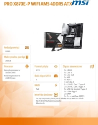 PRO X870E-P WIFI est conçue avec des fonctionnalités exclusives pour des performances maximales et une compatibilité totale avec les processeurs AMD Ryzen série 9000. Cette solution est idéale pour les utilisateurs exigeants recherchant à la fois des performances de premier plan et une connectivité stable et rapide.