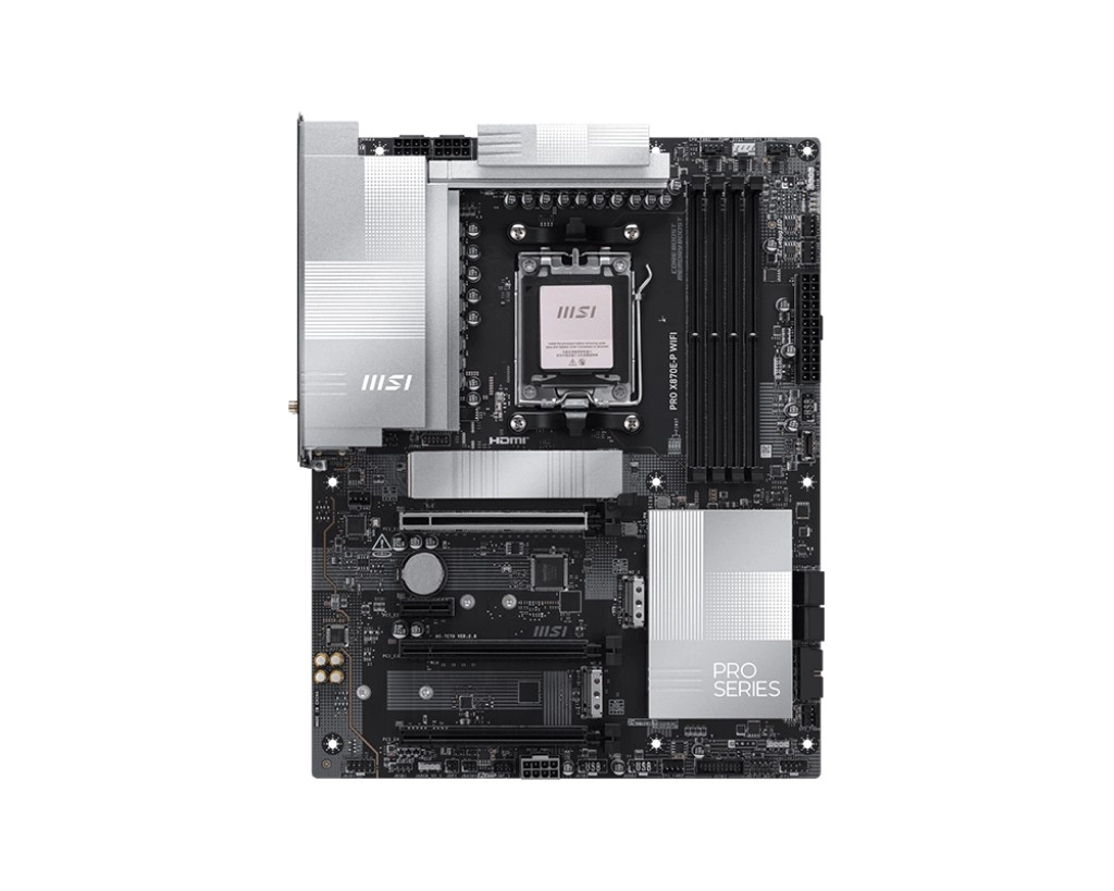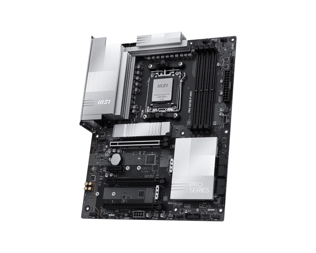 PRO X870E-P WIFI offre un design élégant dans une teinte argent harmonieuse qui s’accorde parfaitement avec les configurations PC noir et blanc. Elle propose des fonctionnalités de pointe comme le véritable Wi‑Fi 7 avec antenne EZ, le LAN 5G, le PCIe 5.0 M.2 avec EZ M.2 Shield Frozr II et plus encore.