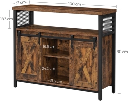 Cette armoire rustique avec étagères réglables et portes coulissantes style grange est idéale pour tout intérieur. Elle s’intègre parfaitement au salon, à la chambre ou au couloir.