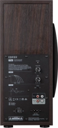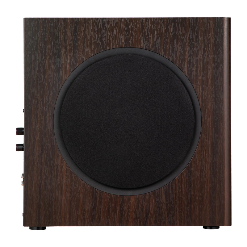 La construction robuste en MDF de 18 mm minimise les résonances, tandis que la finition bois marron assure une esthétique soignée. Les entrées et sorties RCA garantissent une large compatibilité avec d’autres appareils.