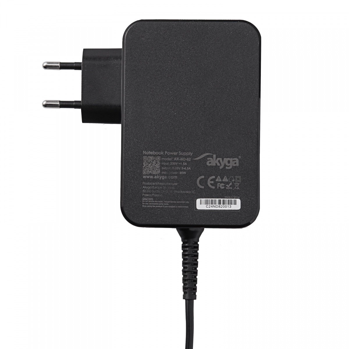 Le chargeur universel Akyga AK-ND-82 s’adapte dynamiquement à la puissance requise par l’appareil connecté. Il peut fournir une tension de 5 à 20 V et un courant de 3 à 4,5 A, garantissant une charge rapide et sûre même pour les appareils les plus exigeants.