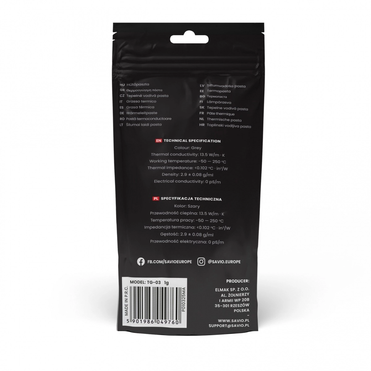 La pâte thermique Savio Glacier TG-03 est conçue pour améliorer le transfert de chaleur entre le processeur et le dissipateur. Grâce à sa consistance, l'application est facile, même pour les utilisateurs moins expérimentés. La pâte comble les lacunes microscopiques à la surface et assure une haute conductivité thermique.