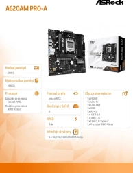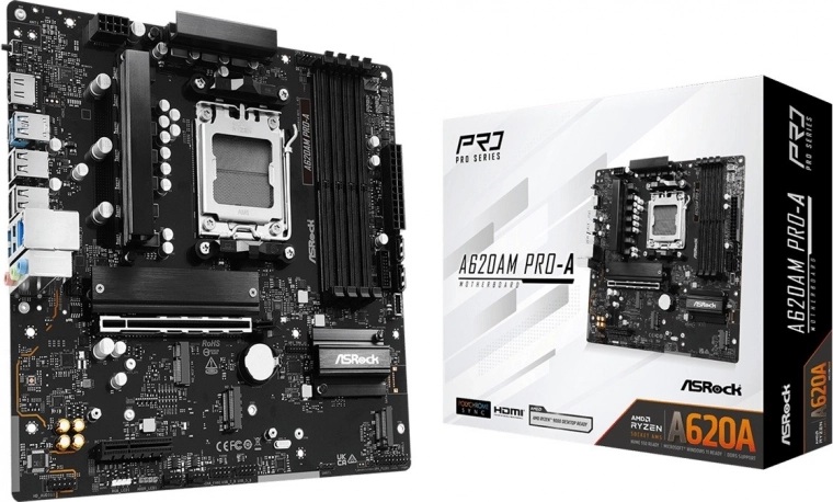 La carte mère A620AM PRO-A AM5 est équipée de fonctionnalités modernes et prend en charge les processeurs AMD Ryzen des séries 9000, 8000 et 7000 avec le socket AM5. Grâce au système d'alimentation en phases 6+2+1 Dr.MOS, elle offre une performance stable et efficace. Elle prend en charge jusqu'à 4 modules de mémoire DDR5 DIMM avec possibilité de Dual Channel et des fréquences allant jusqu'à 8000+ MHz (OC).