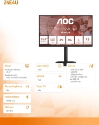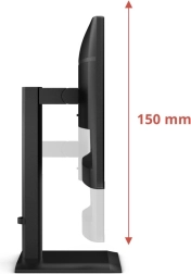Le design ergonomique permet le réglage de la hauteur jusqu’à 150 mm, une inclinaison de -5° à +23°, une rotation de ±175° et une fonction pivot pour faire pivoter l’écran de 90°. Le revêtement antireflet et la réduction de la lumière bleue assurent un confort d’utilisation prolongé.