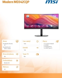Le Modern MD342CQP porte la productivité et le divertissement à un autre niveau. Grâce à la résolution UWQHD sur une diagonale de 34", vous disposez de plus d’espace pour vos applications, vos timelines et vos panneaux latéraux. La courbure de l’écran vous plonge au cœur de l’action et améliore la perception périphérique, que vous retouchiez des photos, montiez des vidéos ou vous immergiez dans vos jeux.