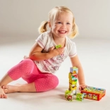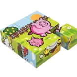 Des cubes en bois avec des images colorées d’animaux domestiques sont un choix idéal pour les tout-petits. Ils aident à développer la pensée logique, l’imagination et la motricité fine.