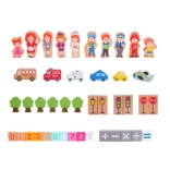 • 10 figurines en bois, 6 arbres et 6 véhicules.