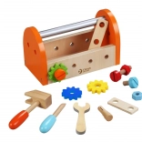Un set créatif d’outils en bois pour petits réparateurs comprenant 16 pièces d’outils robustes dans une boîte en bois pratique. Favorise la motricité fine, la compréhension technique et l’habileté. Fabriqué en bois de qualité, idéal pour les enfants dès 3 ans.