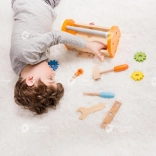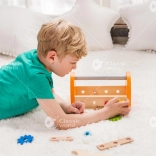 Ce set d’outils en bois ravira tous les petits bricoleurs qui aiment aider à la maison. Dans la solide boîte en bois, vous trouverez tout le nécessaire pour des “réparations” sûres et ludiques. Le jouet développe la coordination œil-main, stimule la créativité et initie les enfants aux bases des travaux manuels.