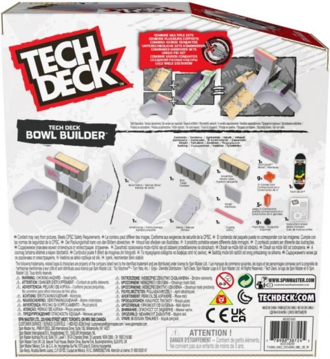 Assemblez différentes combinaisons de votre propre skatepark avec des rampes, des garde‑corps et divers obstacles. Apprenez de nouvelles figures avec le fingerboard exclusif. Le coffret comprend : 1 fingerboard Tech Deck, 1 rampe bowl, 1 petite rampe, 1 rampe, 1 petit box, 1 box, 1 panneau, 1 panneau Tech Deck, 1 coping, 9 connecteurs X, 5 grands connecteurs X, 9 pieds, mode d’emploi. Convient à partir de 6 ans.