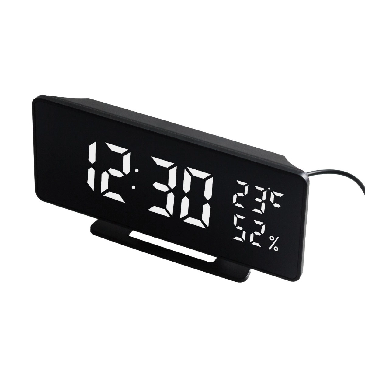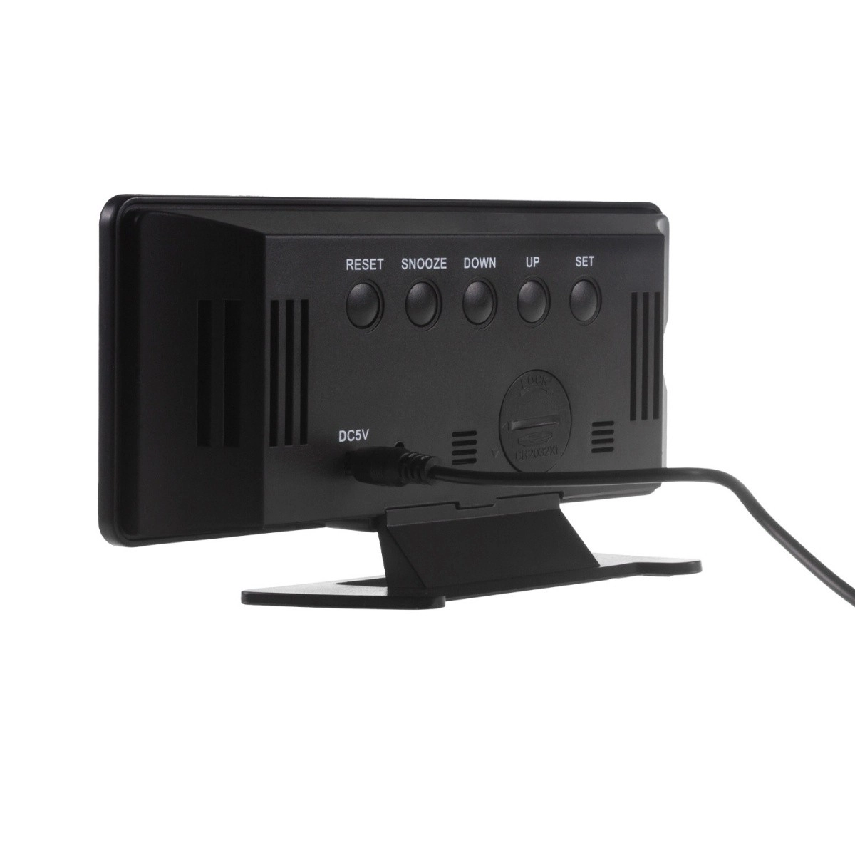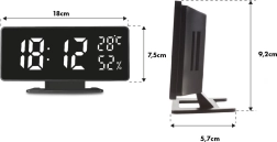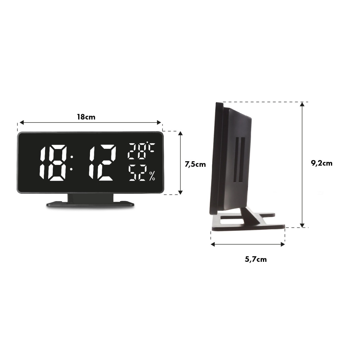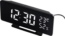 Ce réveil propose un format horaire 12/24 h au choix et un affichage de la température en °C ou °F. Il s’adapte automatiquement à la luminosité de la pièce et dispose de deux modes d’affichage. La pile CR2032 conserve les paramètres en cas de coupure de courant.