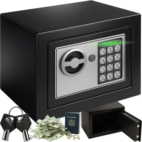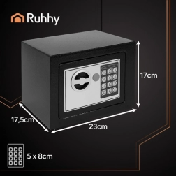 Le coffre-fort RUHHY offre un rangement fiable pour vos documents, espèces ou bijoux dans une construction en acier robuste. Le chiffrement électronique moderne garantit que vous gardez le contrôle de l’accès, et grâce à la clé d’urgence, vous pouvez ouvrir le coffre même en cas de piles déchargées. Ses dimensions compactes facilitent l’installation dans une armoire, un tiroir ou au mur.