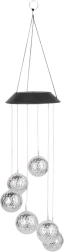 Cette lampe se compose de six boules ajourées suspendues à de fins câbles, qui diffusent une lueur douce et réfléchissent la lumière des LED RGB intégrées. Grâce à l’alimentation solaire, aucun câble ni pile n’est nécessaire – une solution écologique et pratique. Un capteur crépusculaire intégré allume automatiquement la lumière dès la tombée de la nuit.