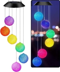 Lampes LED solaires de jardin en forme de boules colorées suspendues, idéales pour éclairer et décorer le jardin, la terrasse, le balcon ou la véranda. Avec leur apparence élégante et leur rétroéclairage coloré intense, elles créent une atmosphère unique.