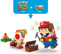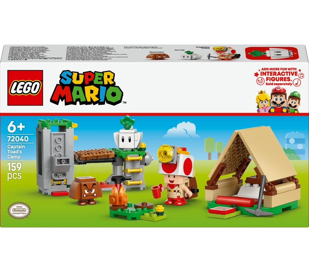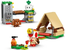Créez une scène d’aventure avec le camp du Capitaine Toad : construisez une tente avec coffre au trésor, allumez un petit feu, explorez le plateau rocheux et activez le pont-levis qui envoie l’adversaire dans la “lave”. Cherchez et cachez les diamants, vainquez le Goomba et détendez-vous près du feu – une parfaite dose de jeu créatif.