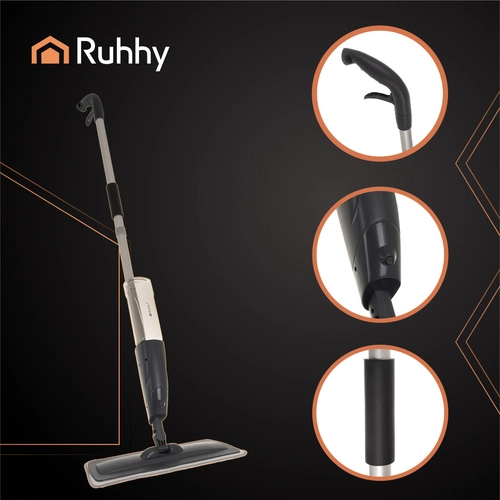 Simplicité et efficacité réunies – Le balai compact Ruhhy permet de laver rapidement les sols sans avoir besoin de seau. En appuyant sur la gâchette, vous vaporisez la solution nettoyante et l’essuyez aussitôt avec la microfibre.