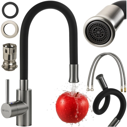 Nous vous présentons le mitigeur de cuisine RUHHY, à la fois élégant et pratique. Il vous offre tout ce dont vous avez besoin pour un fonctionnement confortable dans la cuisine :