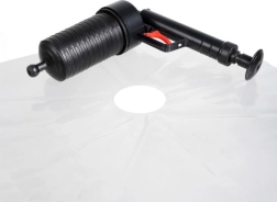 - piston/pistolet à pression, 4 embouts (WC, lavabo, évier, drain), film de protection avec ouverture pour WC