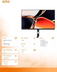 Grâce à la certification VESA DisplayHDR 400, profitez d’une meilleure dynamique dans les scènes claires et sombres. Le port USB‑C avec Power Delivery 65 W alimente votre ordinateur portable et transmet la vidéo avec un seul câble, tandis que 2× HDMI 2.1, DisplayPort 1.4 et le hub USB intégré facilitent la connexion des périphériques. Le pied ergonomique permet l’inclinaison, la rotation, le pivot et le réglage en hauteur, avec possibilité de montage VESA 100 × 100 mm.