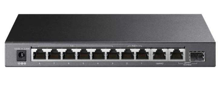 - 10 ports gigabit – 9× RJ45 + 1× combo SFP/RJ45 1 Gb/s