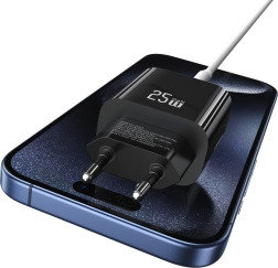 Rechargez jusqu’à deux appareils simultanément grâce à la combinaison des ports USB‑C et USB‑A. La puissance de 25 W et la prise en charge de la charge rapide assurent un ravitaillement efficace en énergie sans attente inutile. Ses dimensions compactes et sa fabrication de qualité font de ce chargeur un compagnon fiable à la maison comme en déplacement.