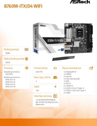 La carte mère compacte ASRock B760M-ITX/D4 WiFi pour socket LGA1700 prend en charge les processeurs Intel Core 12e/13e/14e générations et offre PCIe 4.0, M.2 NVMe Gen4 x4, le Wi‑Fi 6E avec Bluetooth, une connectivité riche USB 3.2 Gen2x2 Type‑C et un audio Nahimic amélioré. Grâce à un VRM 5+1+1 avec Dr.MOS, un PCB à 6 couches et un slot PCIe acier, elle assure stabilité, performances et fiabilité dans le format mini‑ITX.