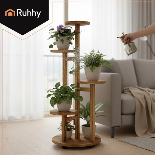 Apportez ordre et verdure à votre intérieur avec la structure légère, mobile et pratique du support RUHHY. Les roulettes pivotantes avec blocage permettent des déplacements fluides sans rayer le sol, tandis que les 6 niveaux offrent de la place pour des pots de tailles variées dans une composition harmonieuse. Le bois de pin naturel est esthétique, facile à nettoyer et résistant à l’humidité – parfait en intérieur comme en extérieur.