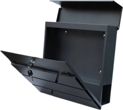 La fente pratique de 3,5 cm de largeur permet d’insérer aisément lettres, magazines et documents au format A4. La correspondance est protégée par des portes verrouillables ; le paquet comprend 2 clés. Des accessoires de montage sont également inclus pour une installation rapide et simple.