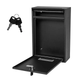 Élégante boîte aux lettres noire en acier galvanisé, résistante à la corrosion et conçue pour une utilisation extérieure durable. Elle offre une fente protégée contre la pluie, un hublot/porte-étiquette pratique et une installation facile grâce aux chevilles et rondelles fournies.