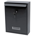 Boîte aux lettres universelle noire, idéale pour une installation sur un portail, une façade ou à l’entrée d’une maison ou d’une entreprise. Sa construction robuste en acier galvanisé assure une longue durée de vie et protège efficacement le courrier des intempéries.