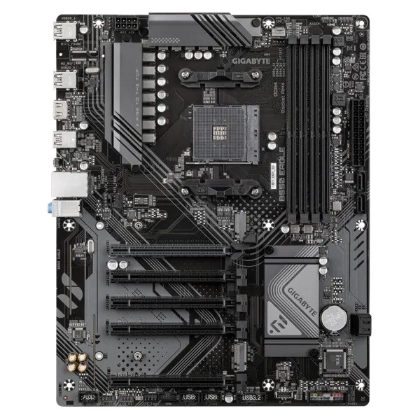 Assemblez un PC performant et stable sur la plateforme AM4. La B550 EAGLE combine un équipement moderne avec un refroidissement bien conçu et un BIOS convivial. L’étage d’alimentation numérique 10+3+1 assure une alimentation fiable même pour les processeurs Ryzen multicœurs, tandis que les quatre slots DDR4 avec prise en charge AMD EXPO facilitent l’atteinte de fréquences mémoire plus élevées.