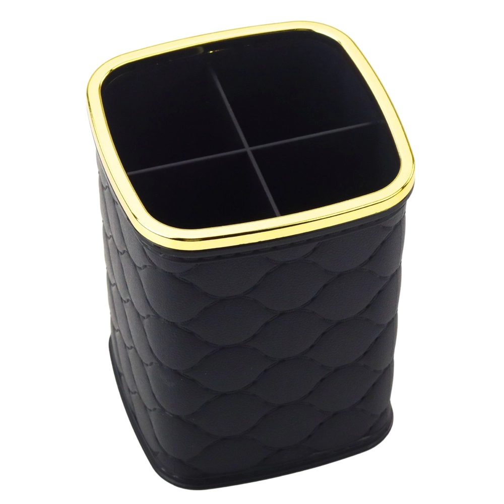 Organiseur pratique pour pinceaux de maquillage avec 4 compartiments séparés qui aide à garder une parfaite organisation sur la coiffeuse comme en salon. Grâce à sa construction stable et résistante, il est idéal pour un usage quotidien, facile à nettoyer et, avec son élégante finition noire, il s’intègre à tous les intérieurs.